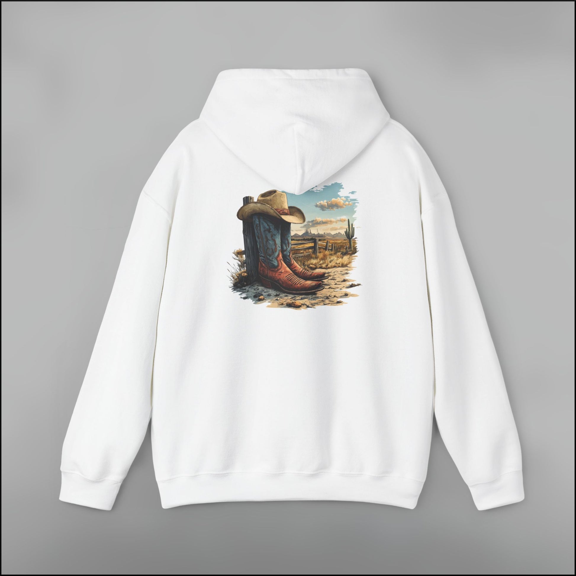 - Timeless Western still life with boots, hat, and desert grit on soft fleece