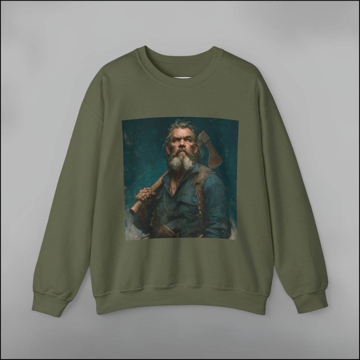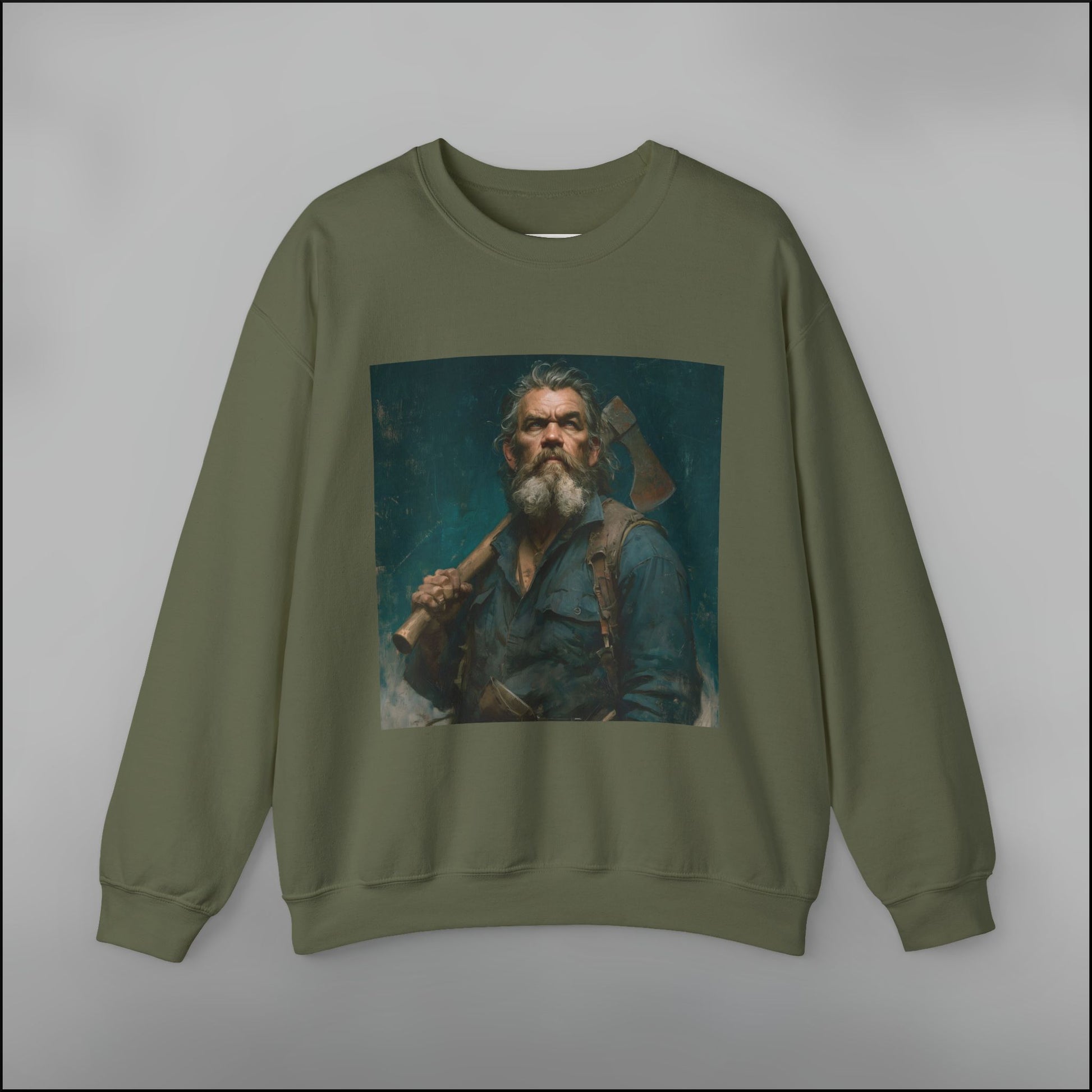 - Bold woodsman portrait with heritage grit and painterly depth