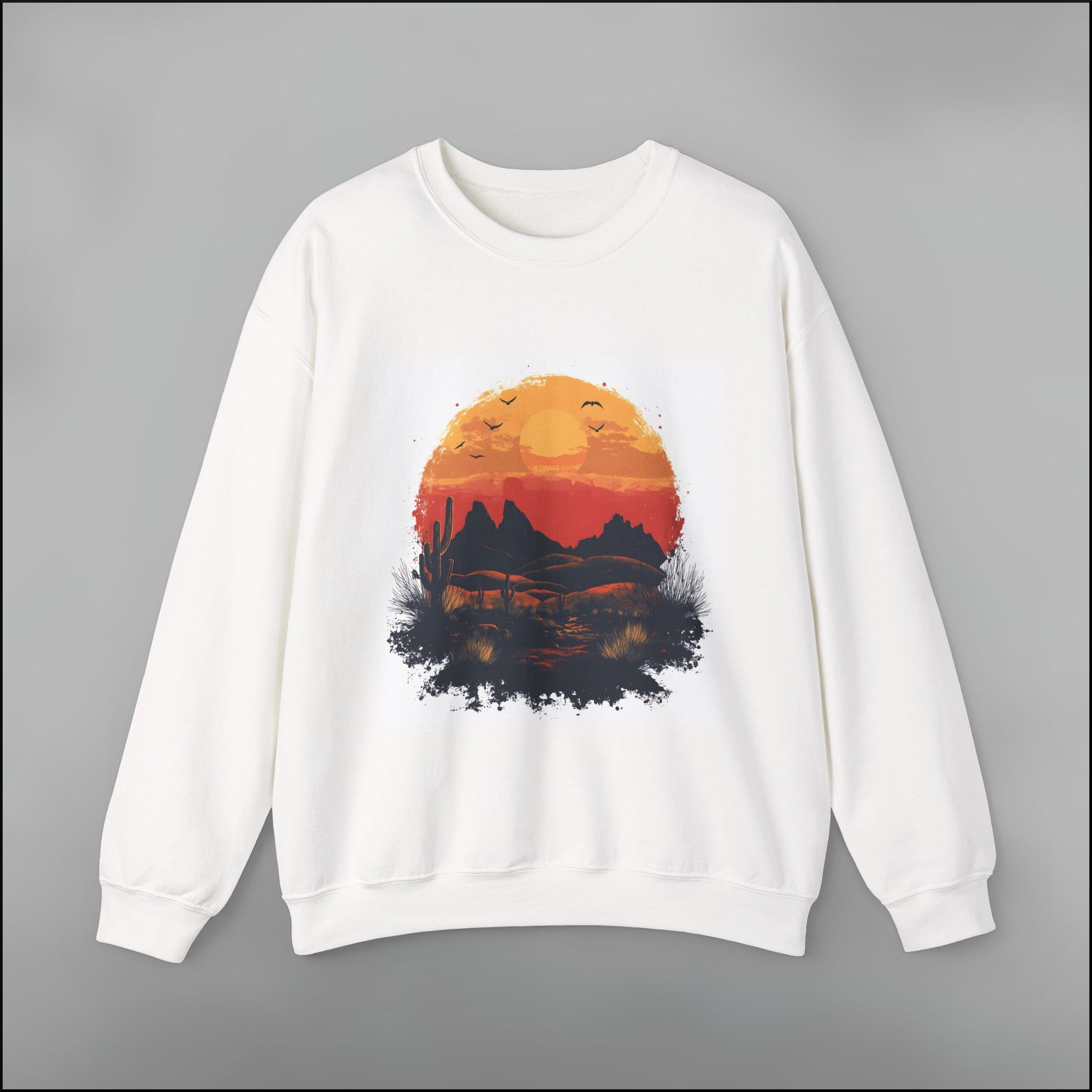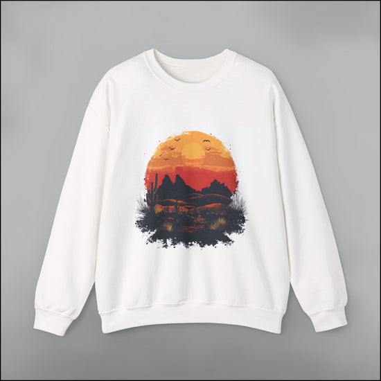 The Desert Sunset Glow Crewneck Sweatshirt is made from heavyweight 100% US cotton for a premium feel and all-season comfort. The classic cut and ribbed neckline give it structure, while the soft texture makes it a favorite from the first wear.