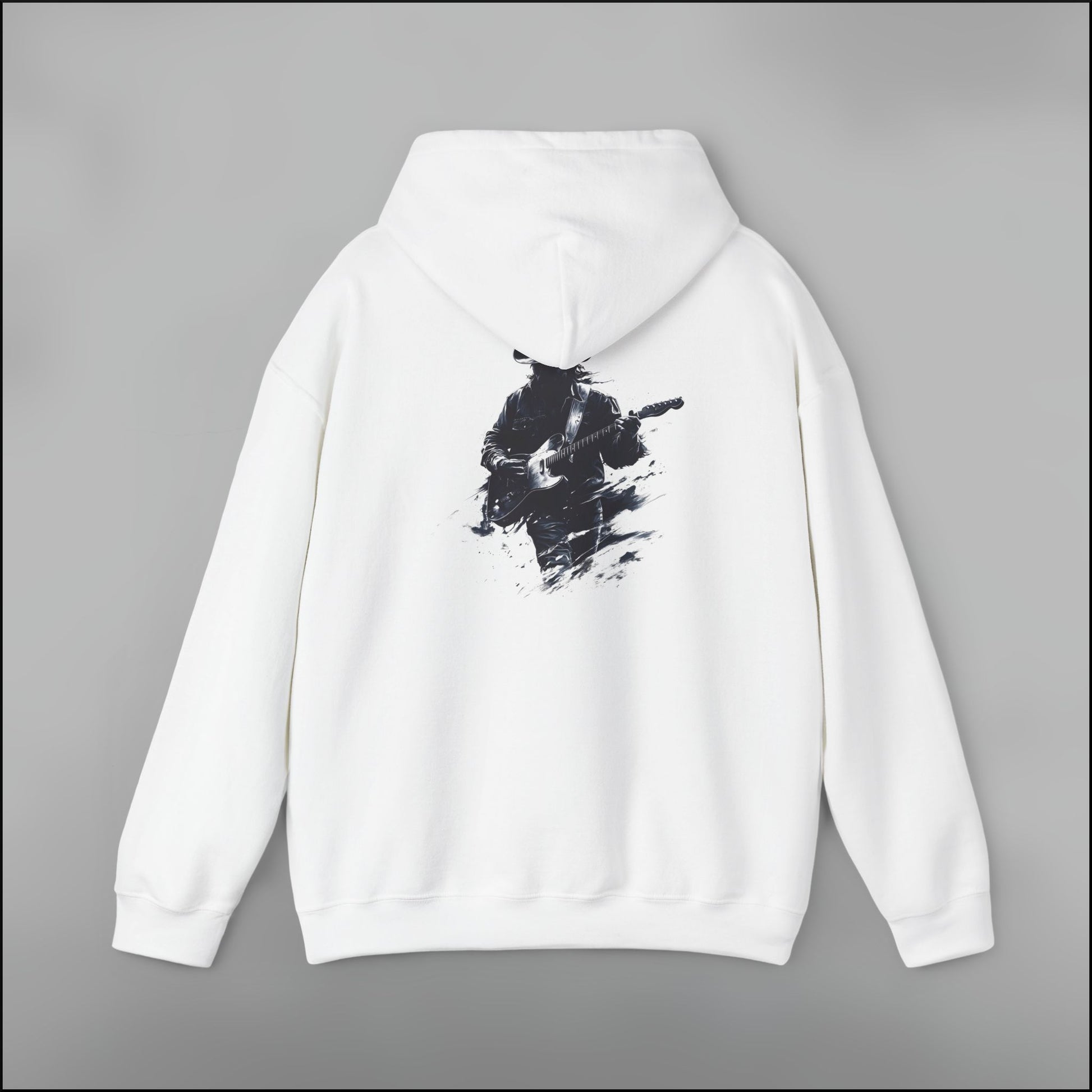 • Abstract ink-style guitarist graphic—subtle, gritty, and powerfully minimalist