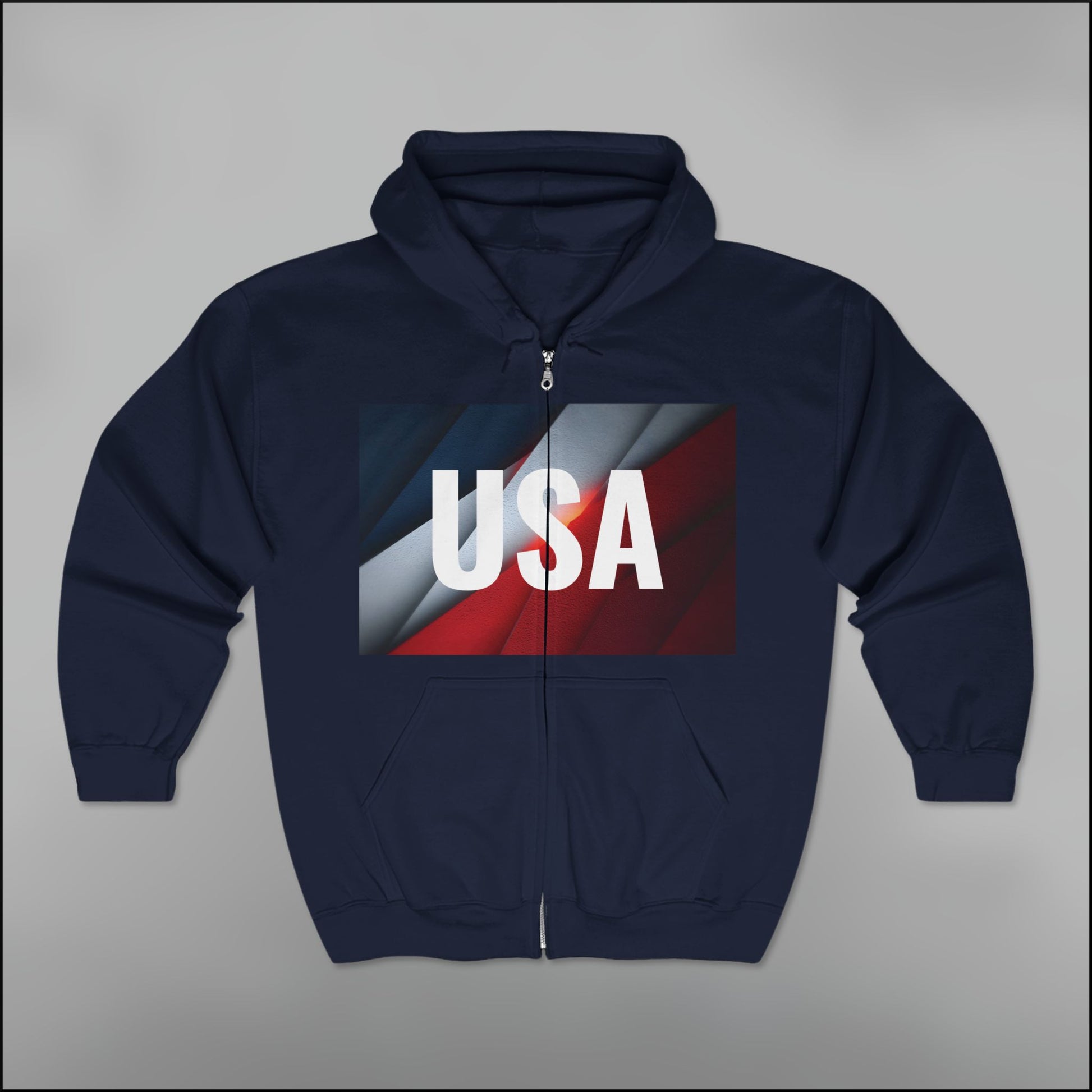 - Gradient flag graphic with classic USA core