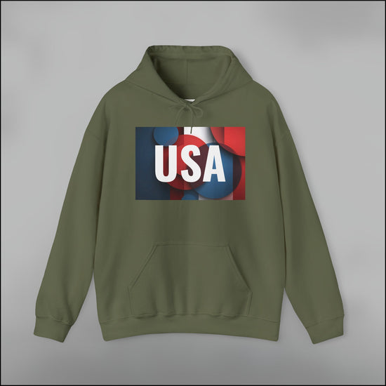 The USA Patriotic Hooded Sweatshirt is made from heavyweight 100% US cotton for a premium feel and all-season comfort. The classic cut and ribbed neckline give it structure, while the soft texture makes it a favorite from the first wear.