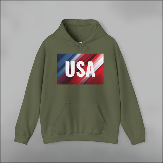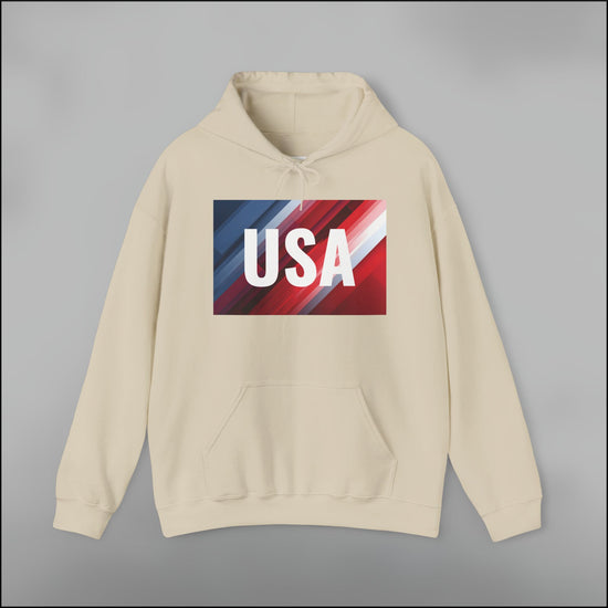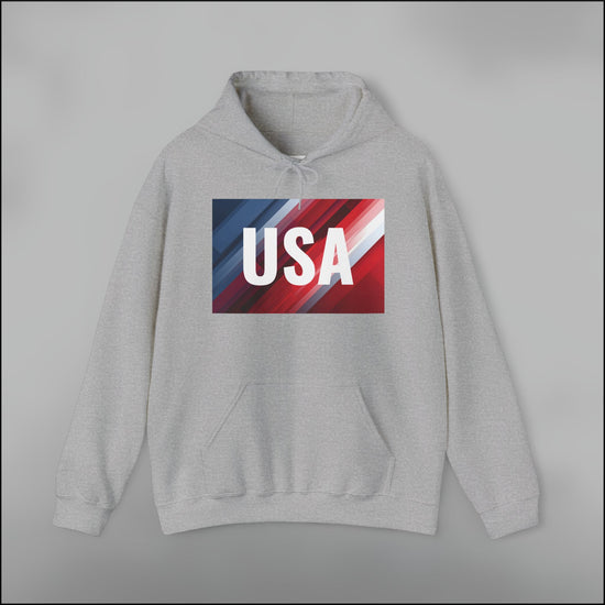 The USA Power Hooded Sweatshirt is made from heavyweight 100% US cotton for a premium feel and all-season comfort. The classic cut and ribbed neckline give it structure, while the soft texture makes it a favorite from the first wear.
