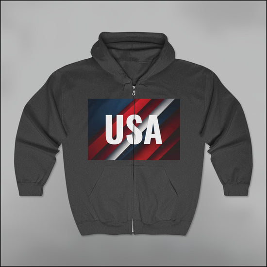 Each Full Zip Hooded Sweatshirt is printed and packed in the USA using high-quality inks and process control.